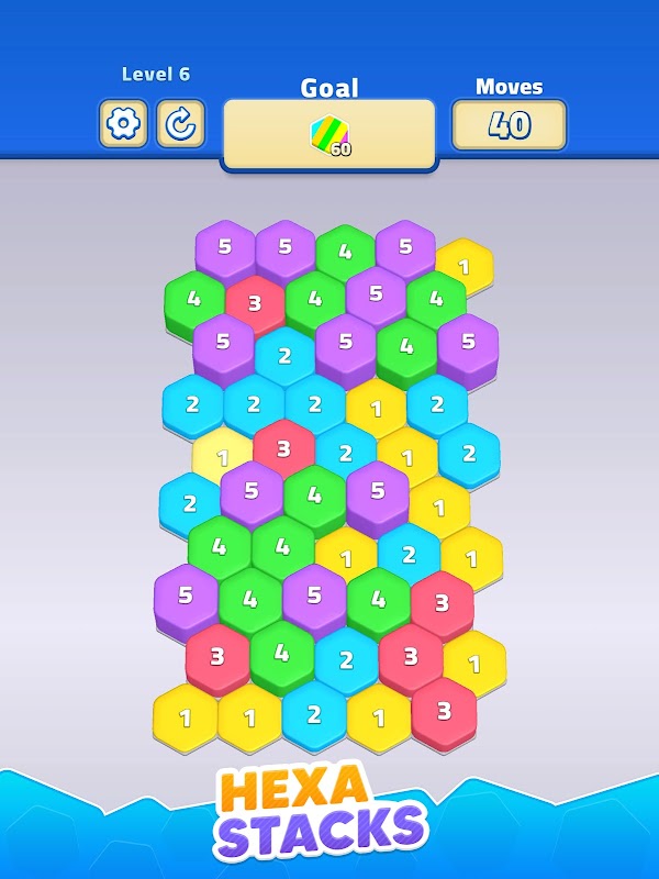 Unisci, potenzia e fai esplodere le tessere per eliminare i bersagli in Click Up Hexa Stack!