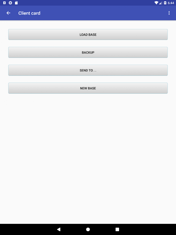 "Carta cliente" è un file di scheda, che è incentrato sul lavoro con i clienti. È una versione gratuita dell'applicazione "Database client" (con un insieme limitato di funzionalità, ma senza pubblicità). Le carte hanno un campo che può essere visualizzato nell'elenco come una cartella colori. È possibile salvare il database in formato testo e csv (per il trasferimento dei dati su fogli di calcolo).
