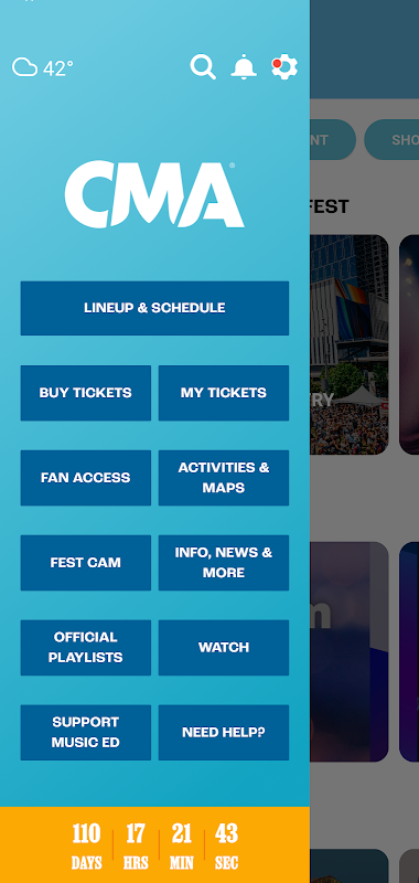 Benvenuto in CMA Connect, l'app ufficiale di CMA! Scarica e attiva le notifiche per annunci esclusivi. Registrati per CMA Fan Access nell'app per partecipare alle sfide e avere l'opportunità di vincere premi durante tutto l'anno!
