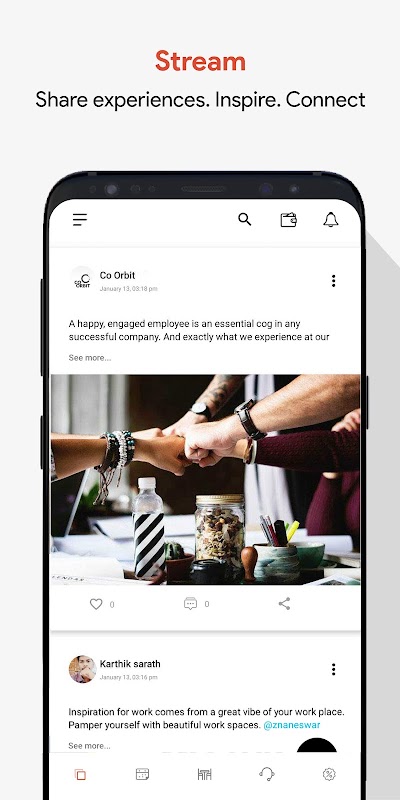 L'app Co Orbit aiuta i membri a condividere le loro esperienze personali, collaborare tra loro, prenotare sale riunioni comodamente e usufruire di sconti riservati ai membri.