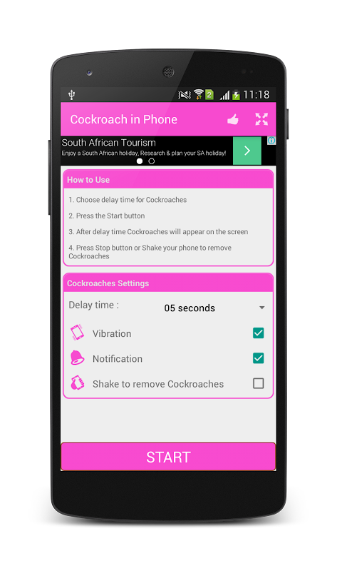 - Cockroach Shake: Solo una scossa per rimuovere / aggiungere schermo scarafaggi.