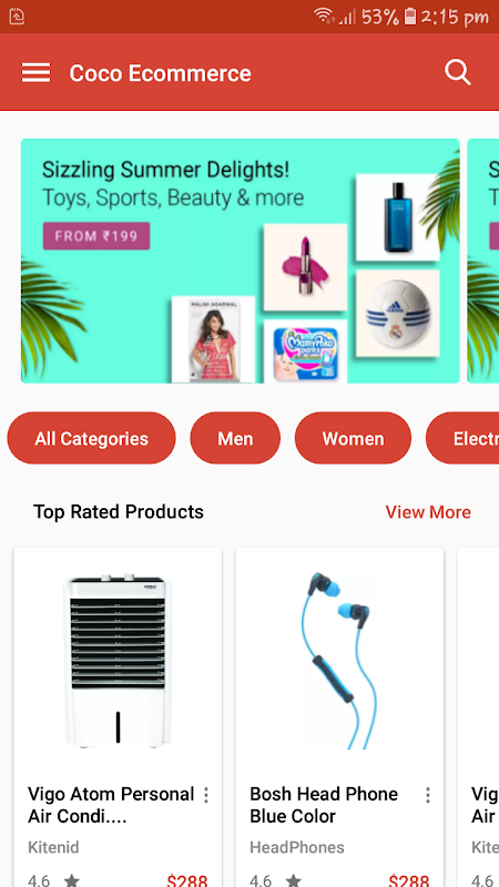 Coco e-commerce app androide con il nostro kit di interfaccia utente impressionante.
