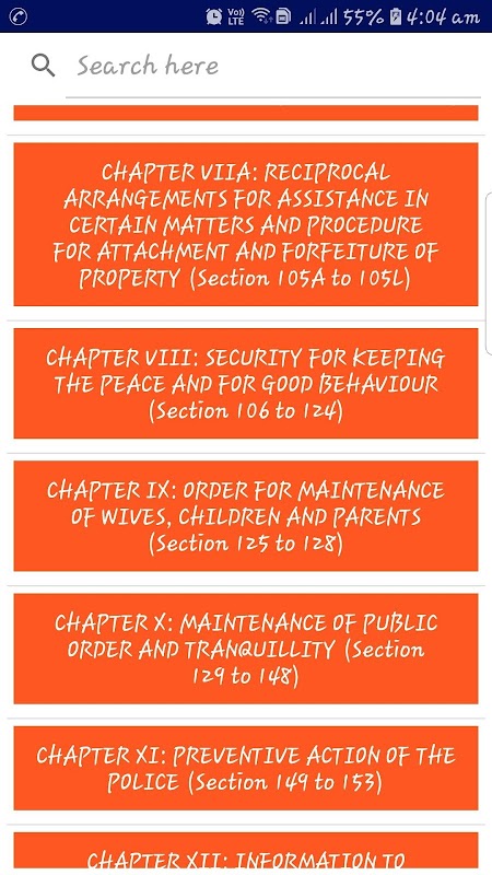 This app provides detailed provisions of Code of Criminal Procedure, Two Schedules and latest Judgements on the the Code of Criminal Procedure. In this mobile app, every efforts were made to see that there may not be any error but inspite of that if any unintentional clerical mistake or error of omission or else taken place, the same will be rectified in the later version. This App is not to provide any legal advice to any one and people interested are requested to refer other sources before reaching any inference. Suggestions are welcome at