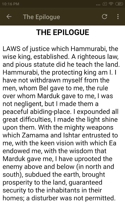 Questa applicazione presenta il codice di Hammurabi tradotto da L. W. King.