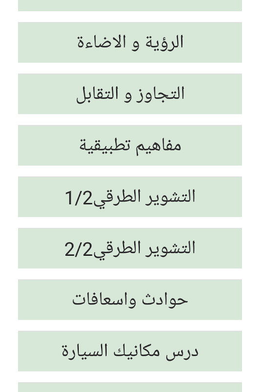 Troverai tutte le domande d'esame ufficiali per l'insegnamento della guida in Marocco e tutte le lezioni sulle regole del traffico in questa applicazione