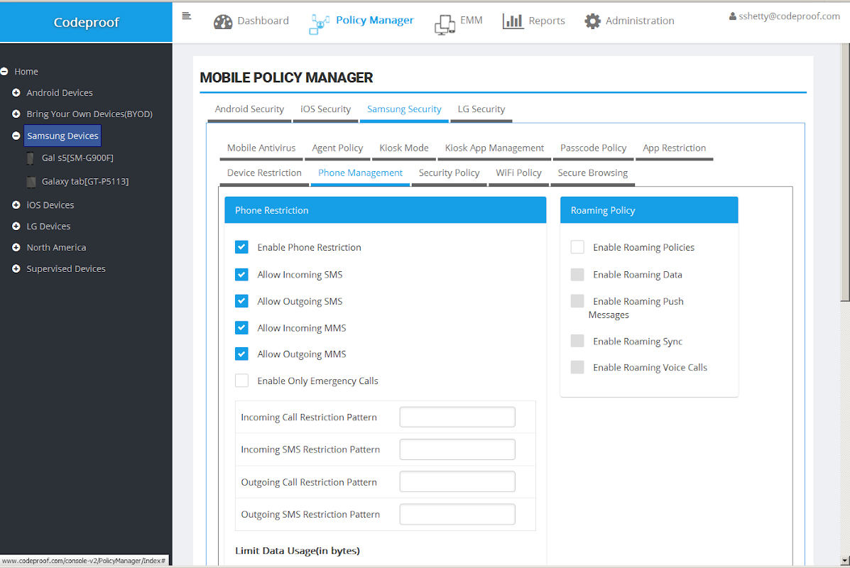 Codeproof Enterprise Mobile Security per i dispositivi Samsung.