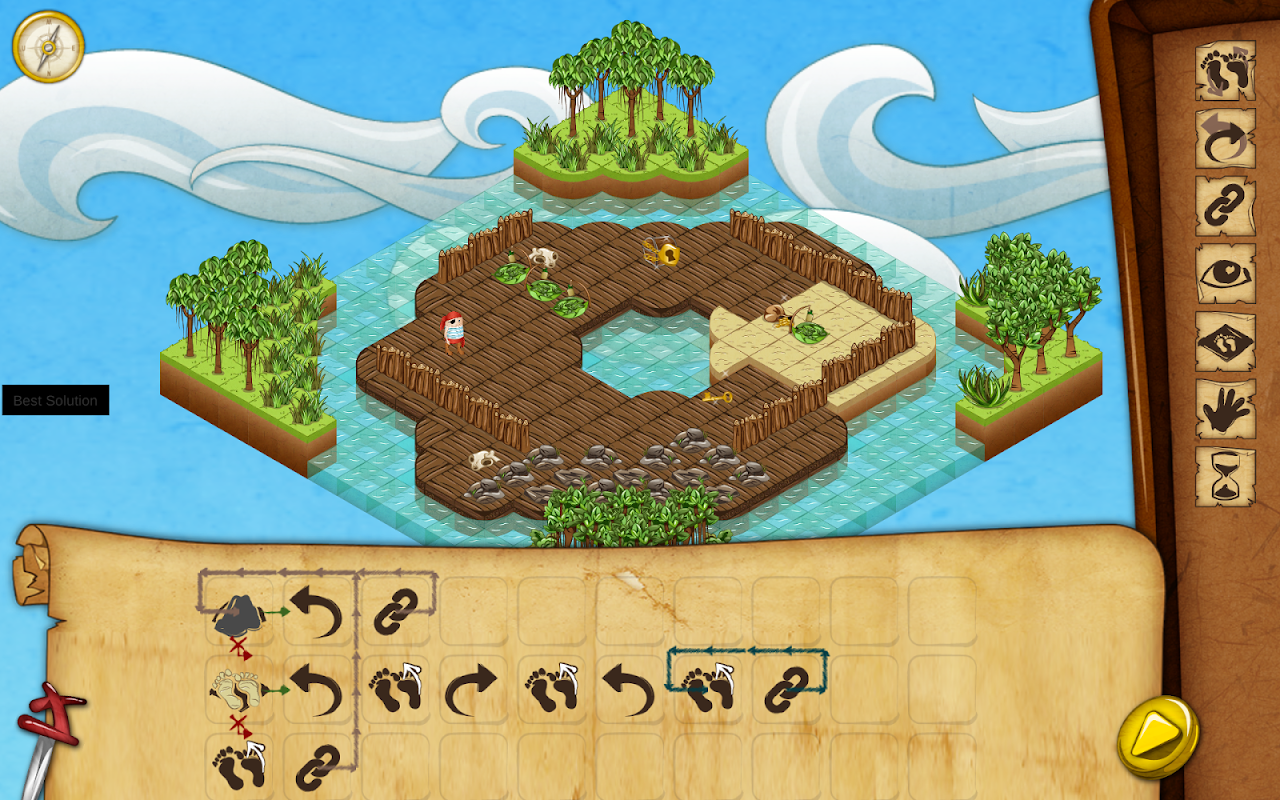 Hjælp Kaptajn Hack med at få fat på skatten ved at kode hans vej på kortet.