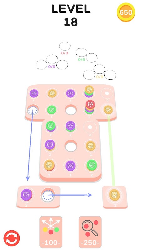 Sposta ogni riga e colonna, impila monete uguali per liberare il tabellone!