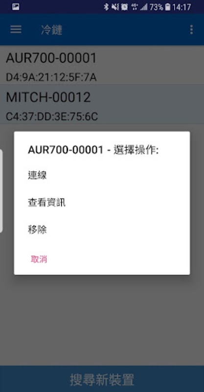 L'app Cold Chain è un'applicazione di monitoraggio della temperatura utilizzata per il sistema della catena del freddo.Può scaricare i dati di temperatura dal lettore portatile AUR700 tramite il Bluetooth wireless (BLE) e la funzione per visualizzare il rapporto degli allarmi per consentire all'operatore di conoscere la temperatura controllo della qualità durante il viaggio di consegna.I dati di temperatura possono essere caricati sul cloud BeeCool per l'utilizzo successivo della ricerca e dell'analisi dei dati.