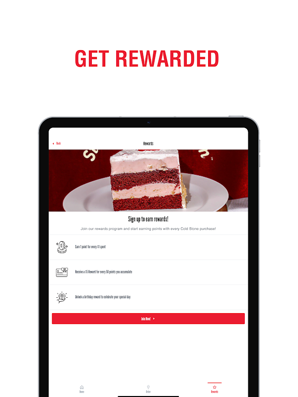 L'app Cold Stone Creamery® ti consente di ordinare il nostro gelato appena fatto in a Creation™, Shake o Cake e averlo pronto per il ritiro nel tuo negozio preferito o consegnato direttamente a casa tua! Accedi al tuo account My Cold Stone Rewards e puoi salvare gli ordini preferiti, guadagnare punti e riscattare i premi!
