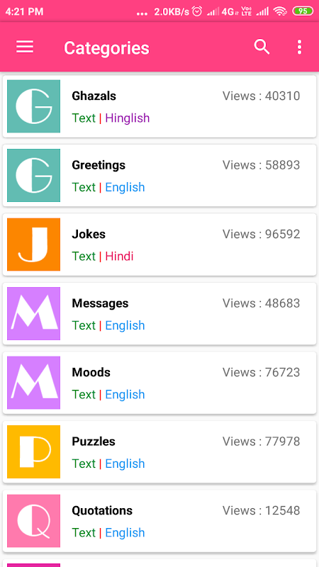 Raccolte di più di 1L Citazioni, Ghazals, Sher, Scherzi, Detti, Saluti