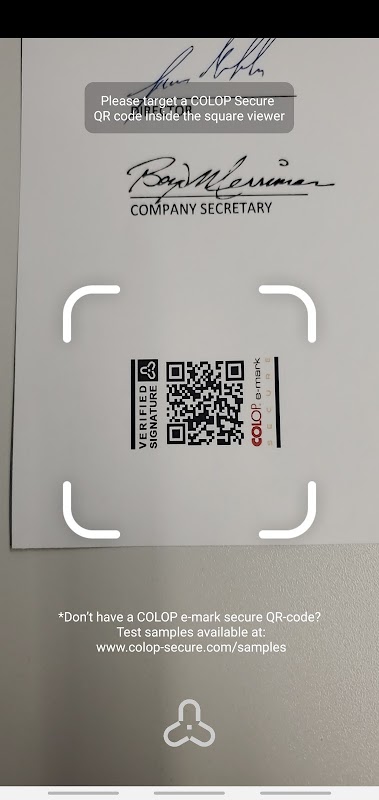 Scansiona un codice QR "COLOP e-mark secure" per verificare l'autenticità