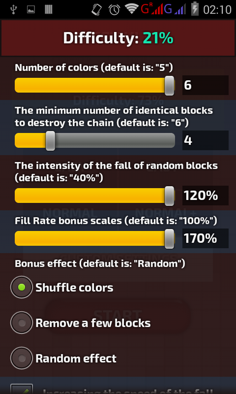Distruggi linea a mano libera di almeno sei mattoni dello stesso colore.
