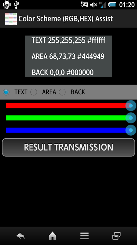 È possibile ottenere valori RGB e esadecimale, facilmente funzionamento della barra di ricerca, c'è un'ulteriore può anche funzionare da inviare alla domanda, quali i valori RGB e la posta esadecimale.