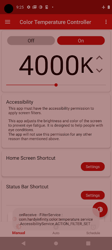La temperatura colore influisce sul comfort visivo, sulla fatica degli occhi e sulla concentrazione. Con questa app puoi regolare la temperatura da 1000K a 7000K, sia di giorno che di notte.