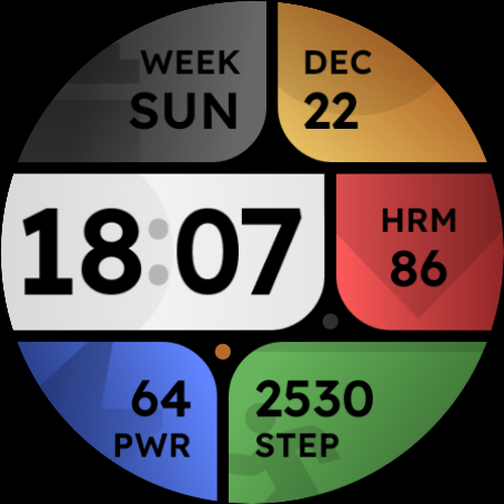 Quadrante digitale a blocchi di colore, stile semplice, con display multi-dati.
