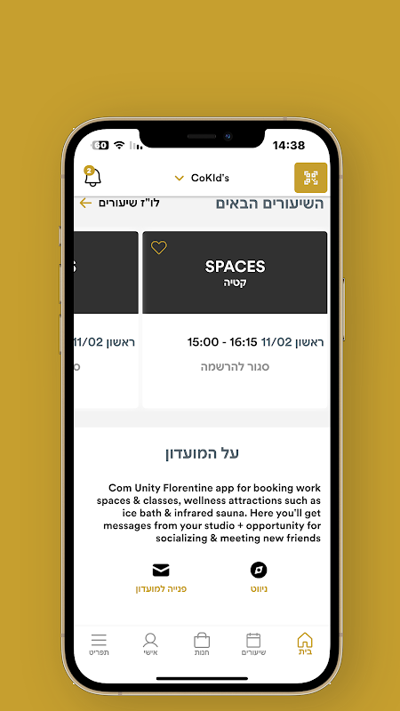 Com Unity App fiorentina per prenotare spazi di lavoro e lezioni, attrazioni benessere come bagno di ghiaccio e sauna a infrarossi. Qui riceverai messaggi dal tuo studio + opportunità di socializzare e incontrare nuovi amici