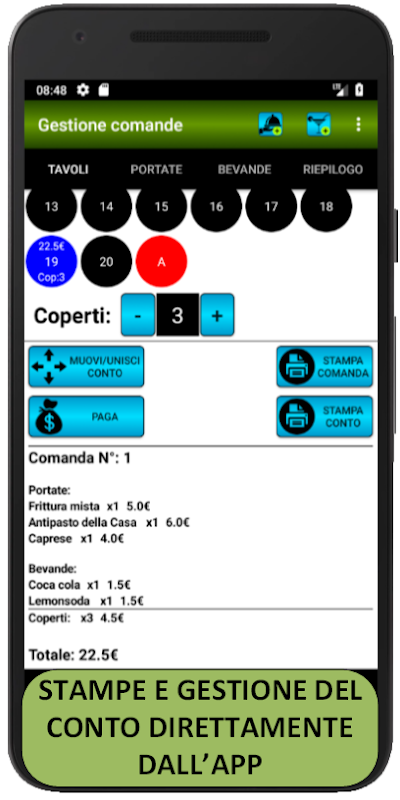 ✔️ Stampa immediata delle ordinazioni prese dal cameriere