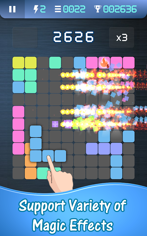 1. Variety of magic effects: magic blocks are very helpful in the game. Besides generation randomly, you can also get them for prize by cleaning multi-line "continuously" or "at once". The more lines you clean, the more powerful you get.