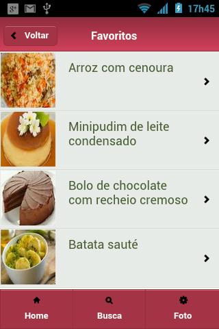 Nesta primeira versão, você poderá ter acesso a 250 receitas, divididas em 25 categorias diferentes (por exemplo: Arroz, Aves, Bebidas etc), todas elas com imagens e sempre acessíveis, já que não requer conexão com a internet (exceto para enviar fotos).