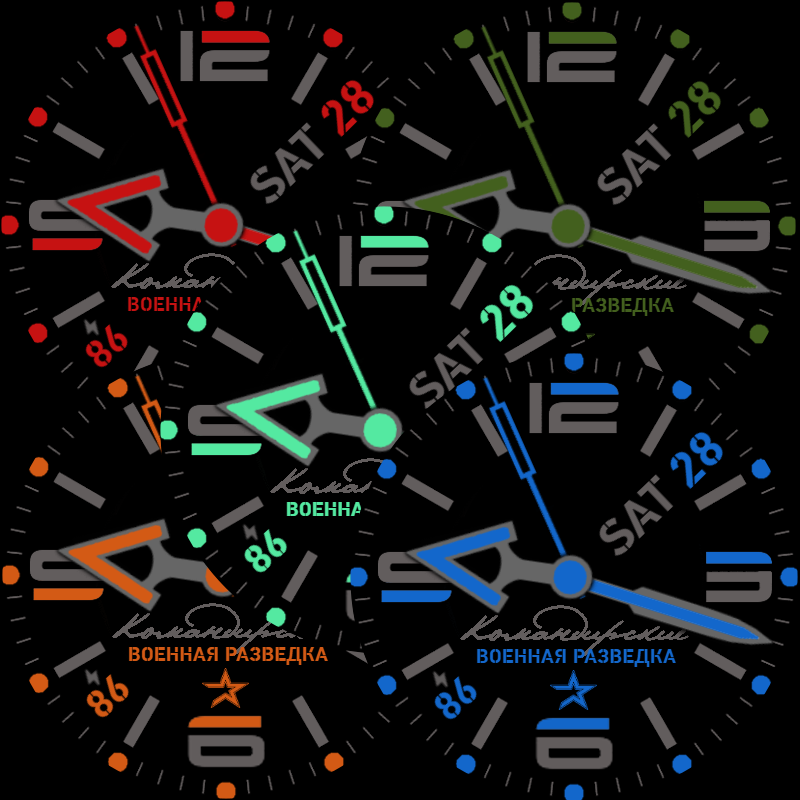 Classico quadrante militare con una scelta di combinazioni di colori.