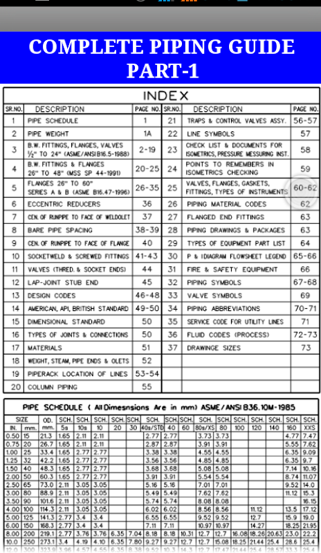 Guide is very useful tools for piping engineers and draftsman and other site technocrats who deals with piping dimensions, standards etc. The tools has the following features: