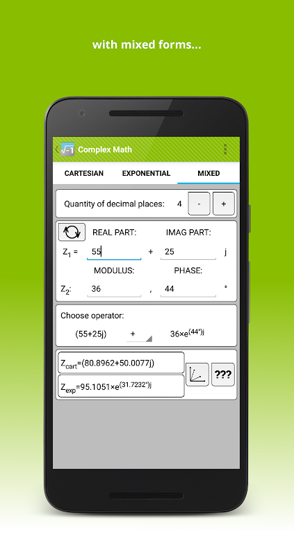 Questa applicazione offre la possibilità di calcolare numeri complessi e mostrare i passaggi per farlo