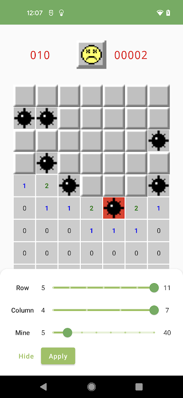 Un semplice gioco fatto in casa realizzato con Jetpack Compose. La regola è calpestare le mine imitando il classico gioco di tanti anni fa.