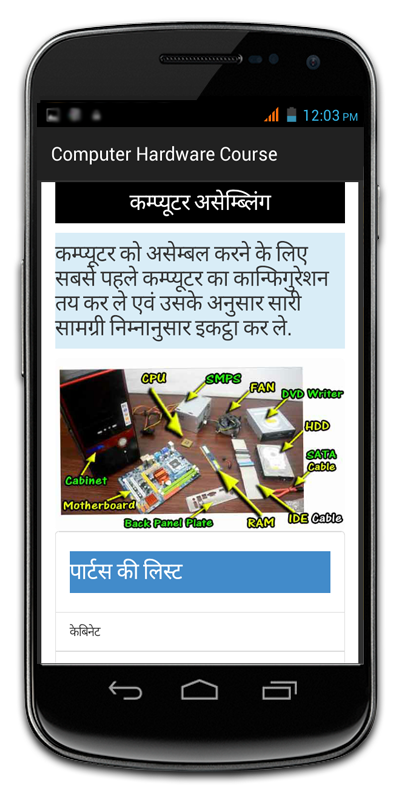 Computer Hardware Course in Hindi & English App covers computer repairing.