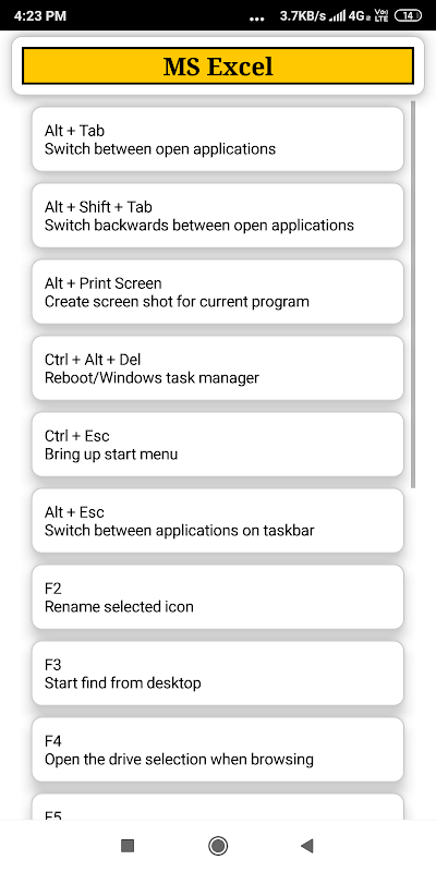 Computer Shortcut Keys is educational application provide different manyshortcuts tricks so that you can increase your work speed.