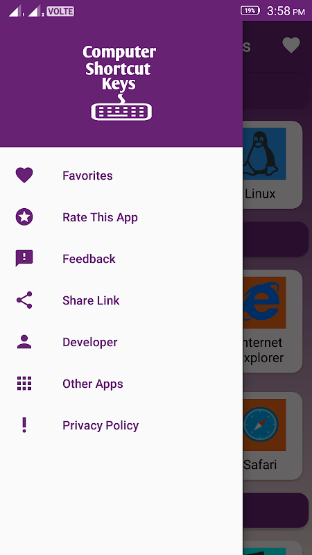 Computer Shortcut Keys App è stata sviluppata dove puoi imparare i tasti di scelta rapida della tastiera in modo che tu possa aumentare il tuo lavoro e risparmiare tempo. Puoi usare scorciatoie da tastiera invece del mouse. Principale concentrato per gli utenti di computer per evitare l'uso del mouse.
