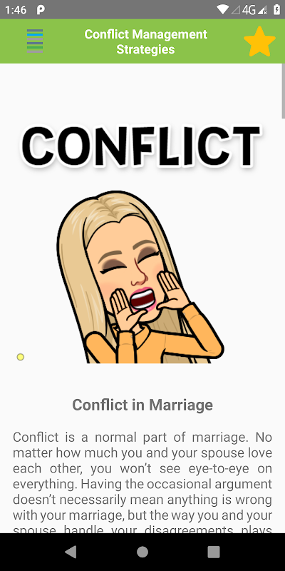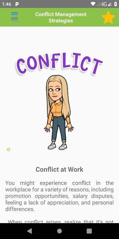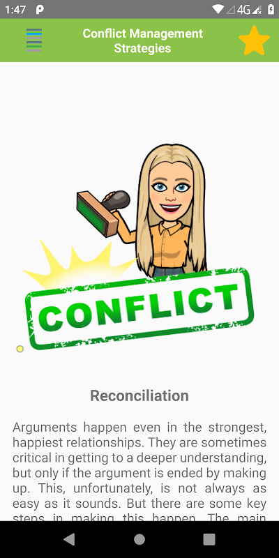 Scopri l'arte di risolvere i conflitti e migliorare le tue relazioni con Gestione dei conflitti, la tua guida tascabile per una comunicazione efficace e la risoluzione delle controversie. Progettata specificamente per persone impegnate, questa app Android concisa ma potente offre conoscenze essenziali sulla gestione dei conflitti e sulla promozione di un ambiente positivo nella tua vita personale e professionale.