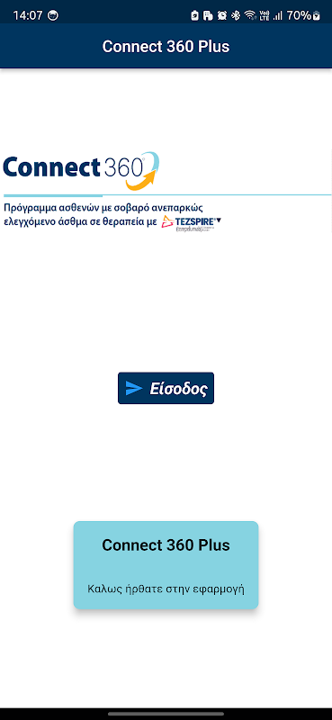 L'app Connect 360 Plus è destinata all'uso esclusivo da parte di pazienti con asma grave e scarsamente controllata a cui è stato prescritto Tezspire® e non deve essere utilizzata in sostituzione di consulenza, diagnosi o trattamento medico professionale. Lo scopo dell'applicazione è fornire informazioni tempestive su date importanti e promemoria sull'assunzione del medicinale, al fine di rafforzare la compliance degli utenti al proprio piano di trattamento. Attraverso Connect 360 Plus, i pazienti possono gestire meglio il proprio trattamento e migliorare la qualità della vita. L'app viene utilizzata esclusivamente per uno studio clinico in cui i pazienti vengono selezionati dall'azienda farmaceutica e invitati a utilizzare l'app. La registrazione del paziente non è consentita senza invito.