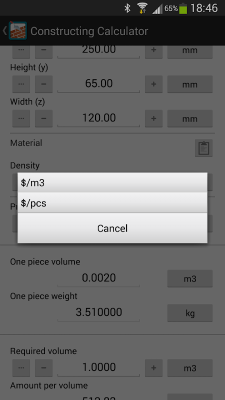 Calculator construction materials, sizes, volumes, cost.
