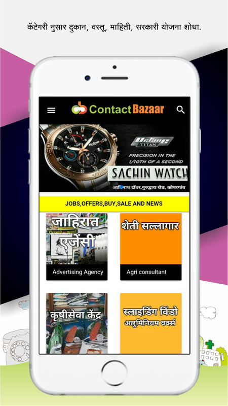 कोपरगावात उपलब्ध माहिती आणि सेवा मिळवणे झाले अगदी सोपे ...कॉन्टेक्टबाजार या ऍप् द्वारे ग्राहकांना घरी बसून दैनंदिन गरजेच्या वस्तु व व्यावसायिकांची सर्व माहिती, ऑफर्स,फोटो,विडियो, पत्ता,मोबाईल नंबर,वेबसाइट,bsnl चे नम्बर,नोकरी, पुनर्विक्री च्या वस्तू,गावतील कार्यक्रम आणि शिबिर,दुःखद बातमी,वाढदिवस,पदनिवड,श्रधान्जली,ई.माहिती त्यांच्या मोबाईलवर पाहिजे तेव्हा,पाहिजे तिथे मिळविणे सोपे होईल.