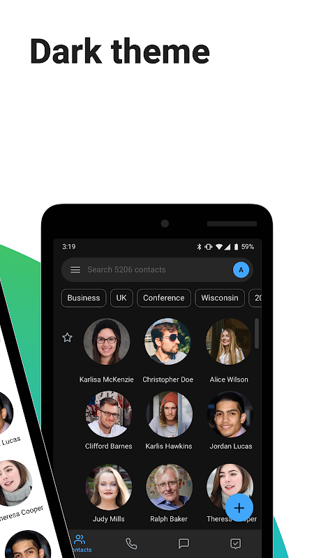 Gestisci tutti i tuoi contatti in un unico posto con ricerca intelligente, unione dei duplicati e dialer.