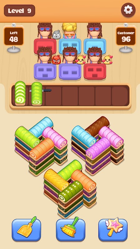 Padroneggia i giochi di sushi risolvendo puzzle da tavolo intelligenti. La sfida principale sta in una pila di piatti dai colori coordinati. Servi i clienti utilizzando la logica del puzzle di abbinamento distribuendo correttamente il sushi dello strato superiore per accedere agli strati nascosti. Questo complicato meccanismo richiede precisione: il piano si muove in modo strategico per soddisfare tutti gli ospiti senza errori. 🍱