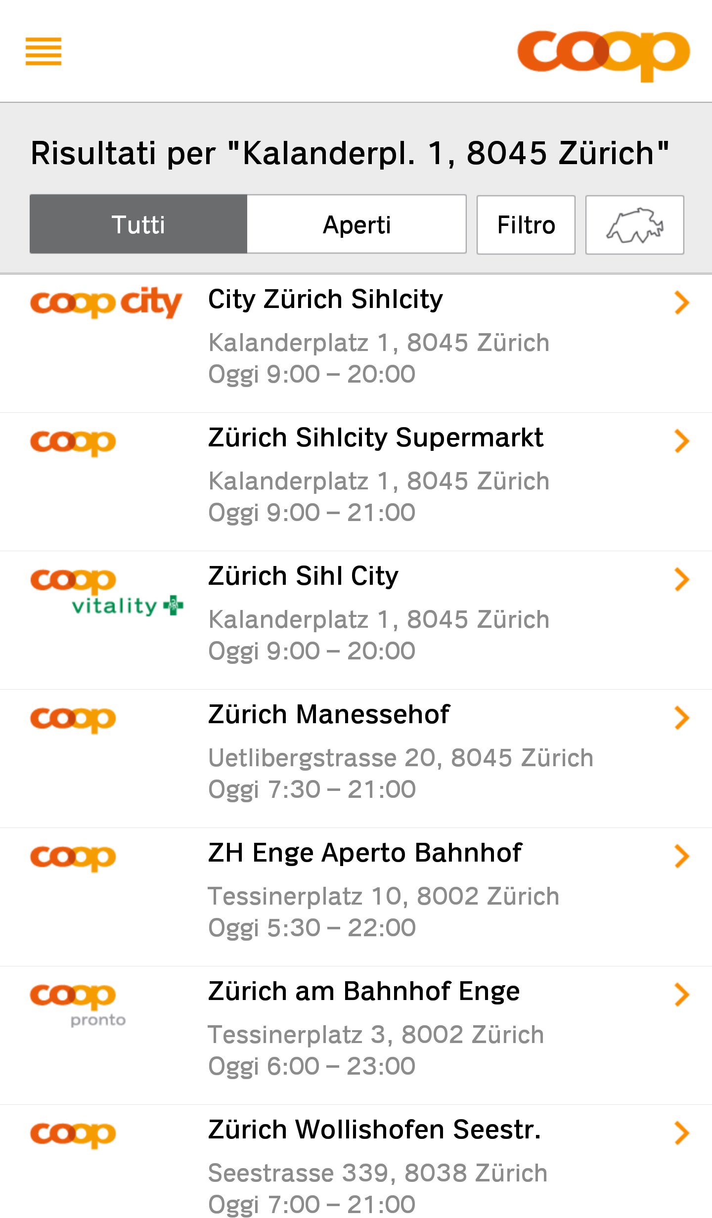 - Cerca il negozio più vicino, pianifica l’itinerario (inclusa la funzione «Locate Me») e visualizza gli orari di apertura dei supermercati Coop, dei centri Edile+Hobby, dei Coop City e di altri formati di vendita Coop.