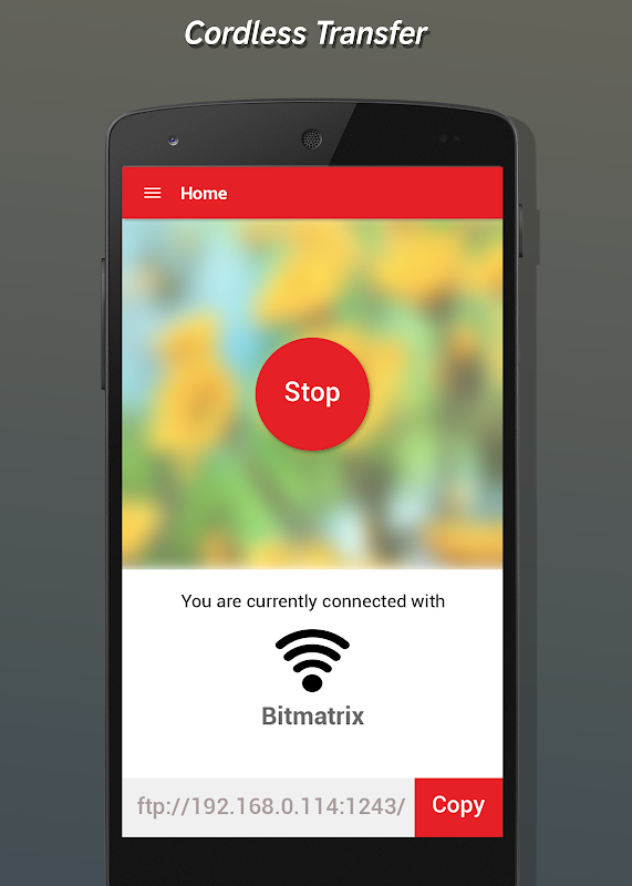 Trasferimento senza fili rende il vostro Android Phone / Pad in un server FTP senza fili. Così si può copiare più file, cartelle o interi hard disk al vostro telefono o vice-a-versa. Dimenticate le corde USB, Basta ricordarsi di trasferimento senza fili becuase si può fare lo stesso lavoro.