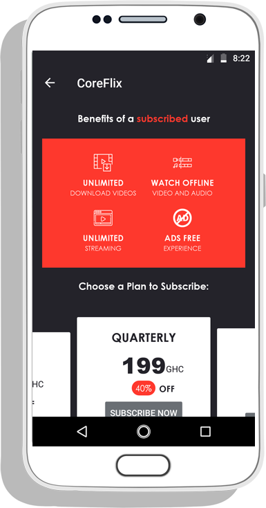 CoreFlix is the ultimate media library app for music videos, movies, tutorials, music streaming, podcasting and even news broadcasting. Based in Accra, CoreFlix exists to connect artistes and their fan base in all over Africa.