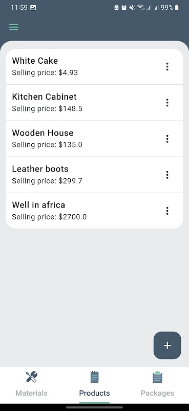 - Crea pacchetti: raggruppa materiali e prodotti per calcolare il costo di pacchetti o set speciali.