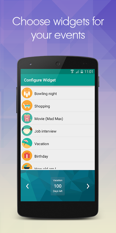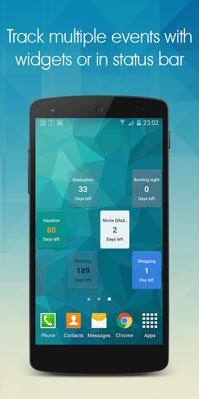 Se vuoi tenere traccia del countdown sulla tua homepage, abbiamo dei widget per te! La home è già piena e non vuoi usare un widget? Non c'è problema, puoi contare i giorni anche nella barra di stato!