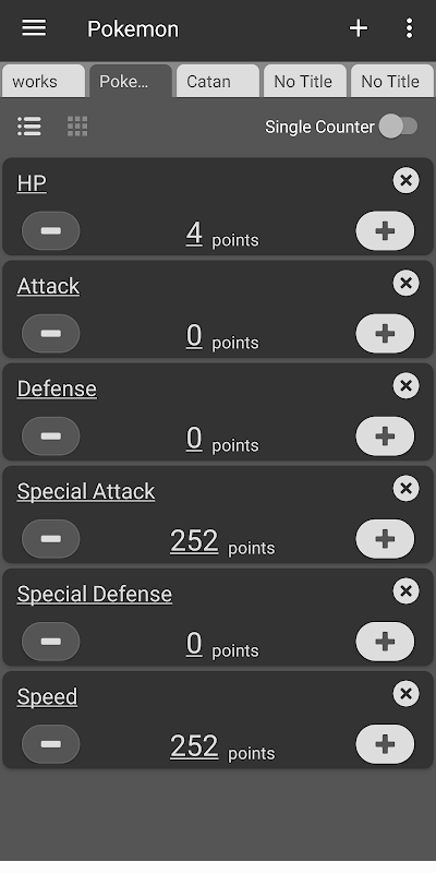 È possibile modificare l'incremento o diminuire il valore in ciascuna del contatore.
