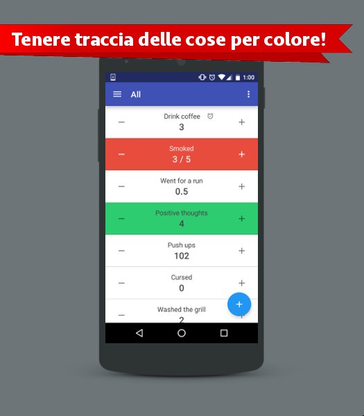 Counter permette di tenere traccia di tutti gli eventi importanti della vostra vita. Non dimenticare mai più quante partite di ping pong hai vinto.