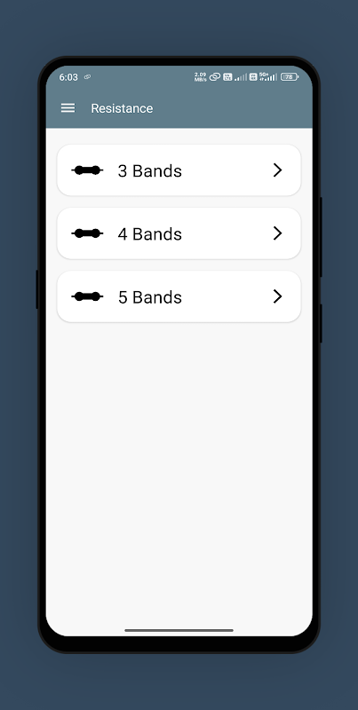 1 Apri l'app e seleziona il tipo di banda resistiva