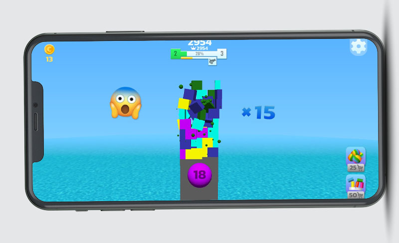Shoot the yellow ball to the yellow squares in the tower, and the blue balls to the blue squares, target the squares with the largest number of squares