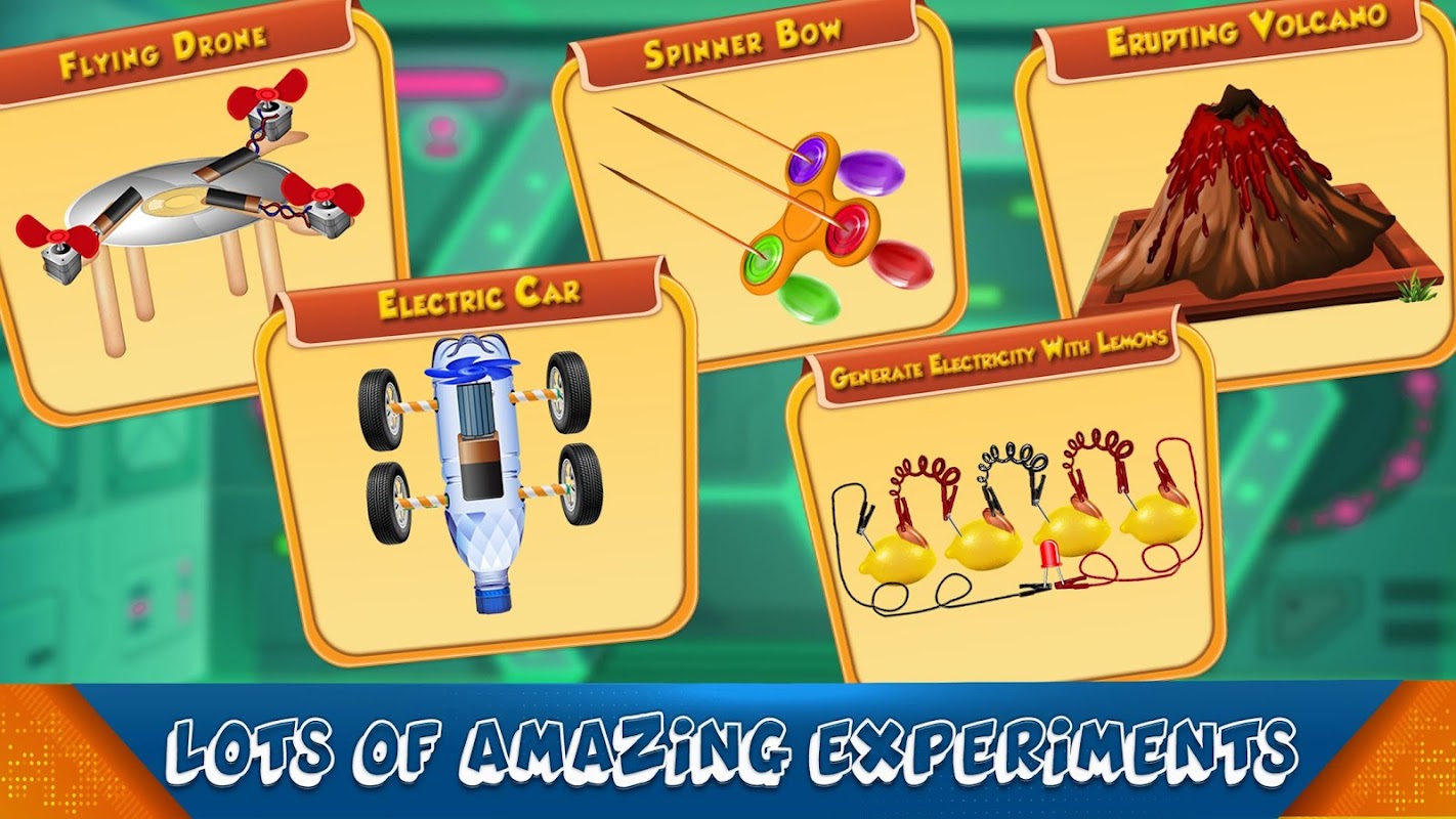 È tempo di imparare 📃📄📑 e rivelare alcuni fatti di base e interessanti sulla scienza. Esegui incredibili esperimenti di laboratorio con gli scienziati di chimica e fisica e osserva le incredibili reazioni chimiche e di altri materiali. Questa pazza febbre da laboratorio per scienziati è un gioco divertente e di apprendimento 📚📖 per scopi educativi e di intrattenimento alla volta. In questi giochi di esperimenti scientifici devi testare fatti scientifici fantastici con strumenti di laboratorio gratuiti🔍🔬🧪. Il piccolo scienziato pazzo scopre il mistero del mondo scientifico nascosto con test scientifici facili e creativi.