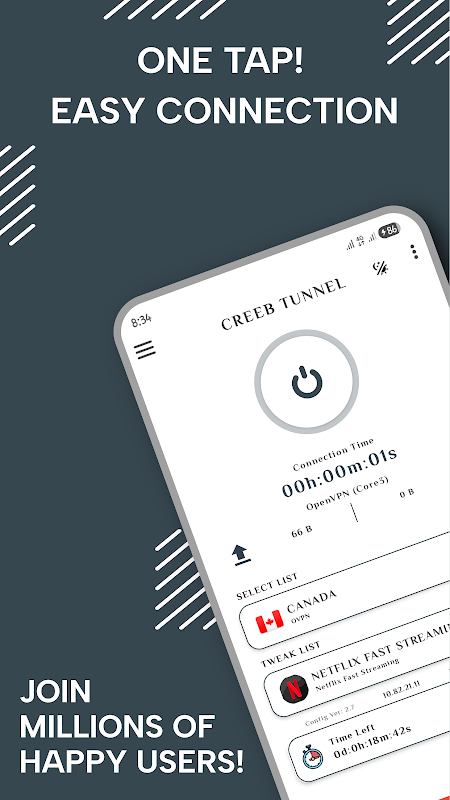 CREEB TUNNEL è un'app VPN che protegge il routing della tua connessione Internet tramite SSH, OVPN, DNS, UDP e V2Ray. CREEB TUNNEL è progettata per proteggere le tue attività online e migliorare l'accesso gratuito a Internet per navigare in rete ed eludere i contenuti con restrizioni geografiche. CREEB TUNNEL è integrato con server veloci e sicuri, personalizzati in base alle diverse regioni, per una connessione Internet fluida e veloce.