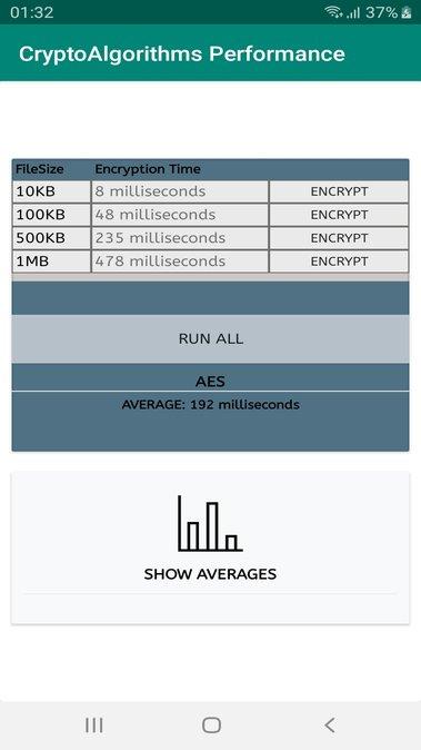Test delle prestazioni di 4 algoritmi crittografici sul telefono.