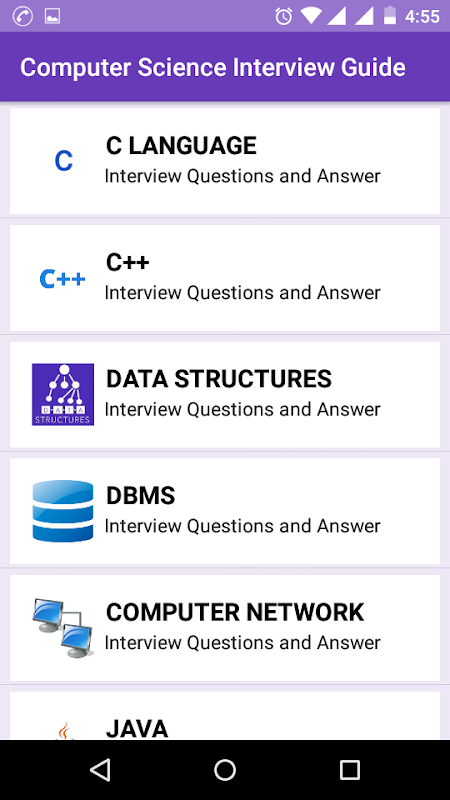 The following subjects are covered in our CS Interview Guide Application.